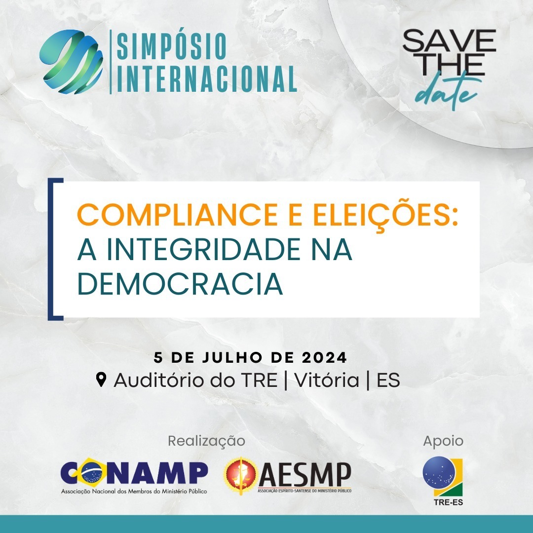 Com realização da AESMP (Associação Espírito-Santense do Ministério Público) e da CONAMP (Associação Nacional dos Membros do MP), com apoio institucional do TRE-ES, o evento trará grandes especialistas internacionais e nacionais em Compliance e Integridade, levando ao público um rico debate sobre as atualizações da Lei, principais erros de gestores e políticos, além de dicas para mitigar riscos ligados as violações da legislação eleitoral.