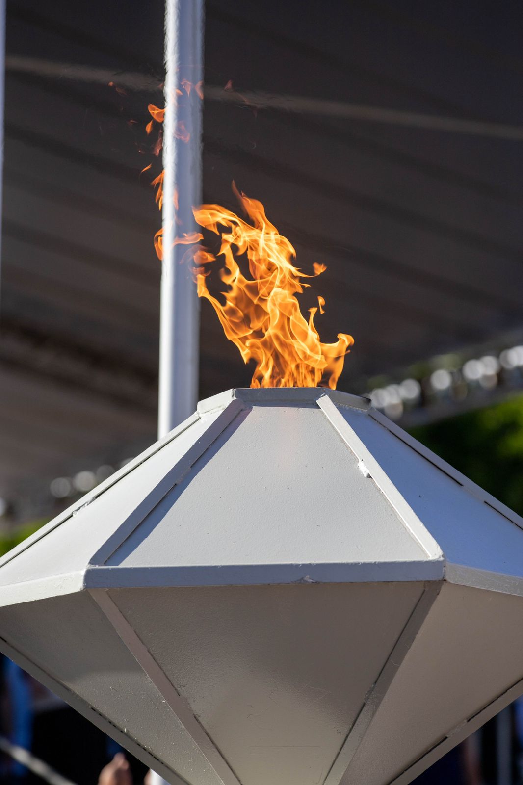 A abertura da solenidade foi marcada pela chegada da tocha acesa, que veio trazida por paratleta do município, para o acendimento da pira, feita pelo governador Renato Casagrande e o prefeito Arnaldinho Borgo, representando a transferência simbólica da capital capixaba de Vitória para Vila Velha, especificamente durante o 23 de maio, data que celebra também o início da Colonização do Solo Espírito-Santense.