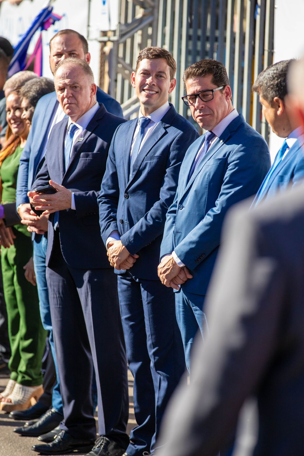 Em seguida, Casagrande e Arnaldinho Borgo subiram no palco para os pronunciamentos oficiais. Na ocasião, realizaram a entrega de medalhas de homenagens a ex-combatentes e também anunciaram uma série de novos investimentos no município.