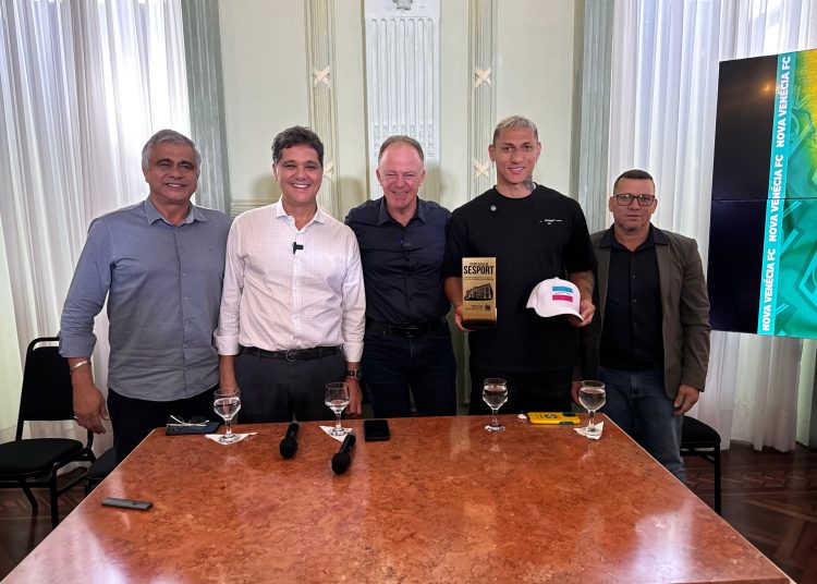 O Governador do Estado, Renato Casagrande, recebeu Richarlison, jogador do Tottenham, da Inglaterra e que disputou a última Copa do Mundo pela Seleção Brasileira, que apresentou os projetos do jogador para o Espírito Santo na manhã desta quinta-feira (14). O jogador é natural de Nova Venécia e um dos investidores do Nova Venécia FC. Fotos: Rodrigo Zaca / Governo ES