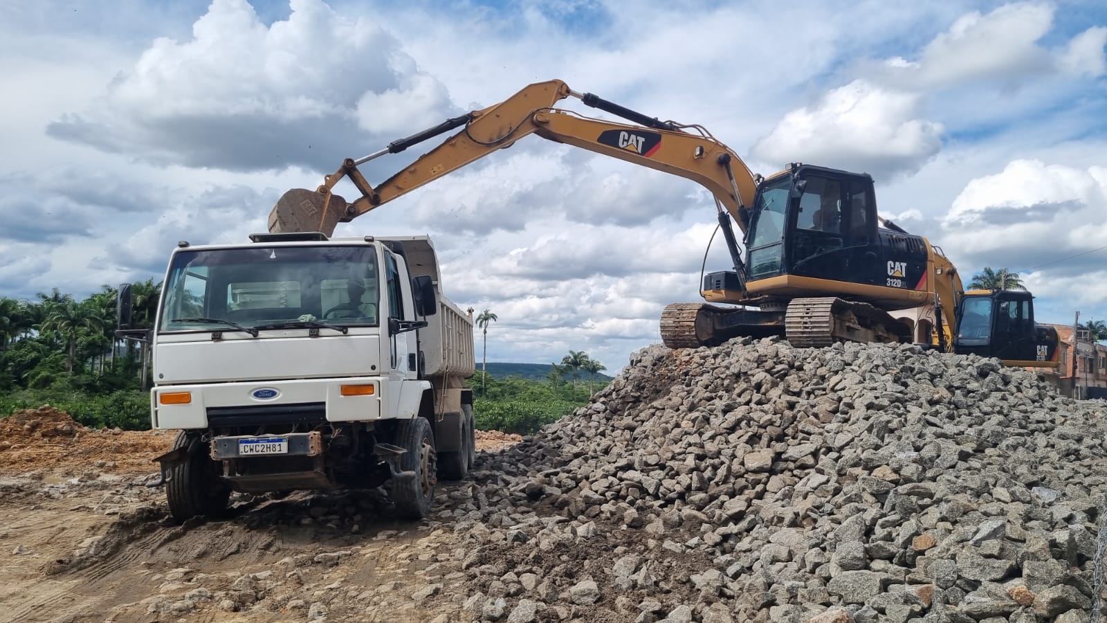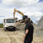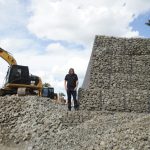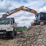 O primeiro setor do primeiro nível – serão três – avança para a conclusão, paralelamente à compactação do contraforte, que acompanha a instalação das gaiolas.