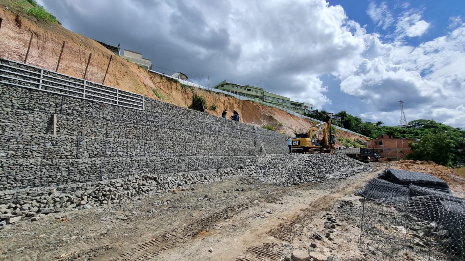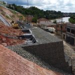 Os trabalhos foram vistoriados ontem pelo prefeito Daniel Santana e equipes da Secretaria Municipal de Obras. Executada com recursos do Governo do Estado, a contenção de encosta já superou a fase mais complicada – a base da estrutura, onde está o lastro e foi instalado o sistema de drenagem das minas de água, que contribuíam para a desestabilização da massa.