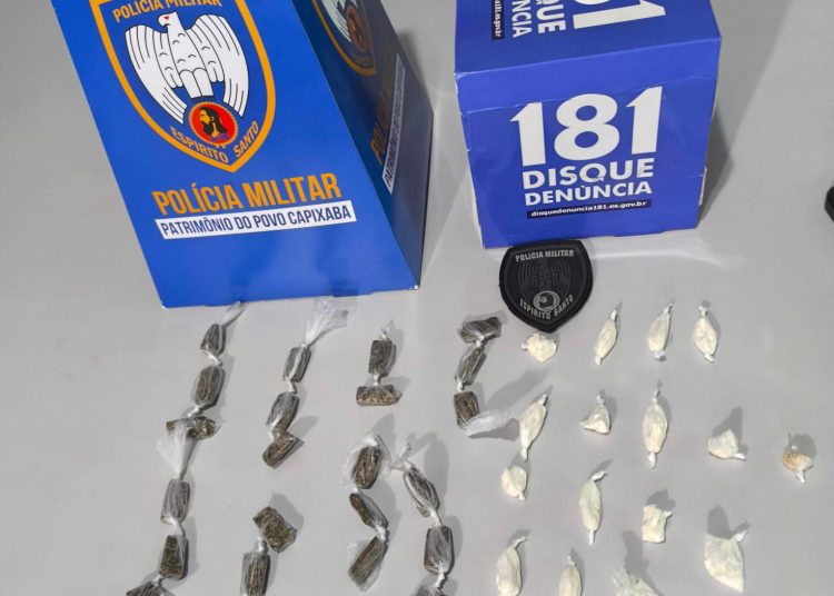Na manhã desta terça-feira , as equipes da Polícia Militar obtiveram êxito em deter 2 jovens T.R.N e M.P.B, ambos com 18 anos de idade, Residentes em Vinhatico, distrito de Montanha/ES. Após o serviço de inteligência (P2) realizar levantamentos no distrito constatou a mercancia de drogas no local e em seguida após acionar a equipe de R.O foi logrado êxito em apreender drogas drogas.