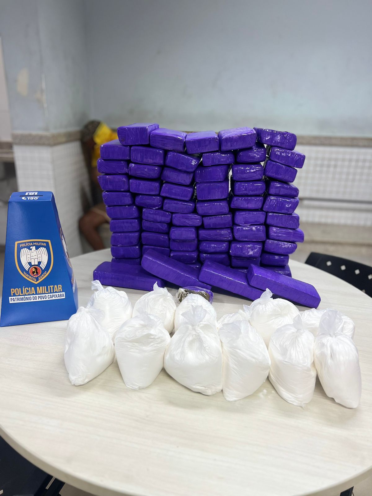Policiais militares do 7º Batalhão detiveram na manhã desta sexta-feira (16), um homem de 23 anos e apreenderam cerca de 44,065 quilos de maconha e 11,465 quilos de cafeína no bairro Porto Novo, Cariacica.