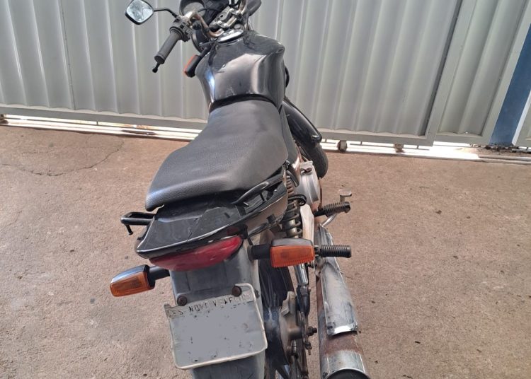 NA MANHÃ DESTA SEGUNDA-FEIRA (18), POLICIAIS MILITARES DO 2º BATALHÃO RECUPERARAM UMA MOTOCICLETA COM RESTRIÇÃO DE FURTO/ROUBO NO BAIRRO JARDIM DE INFÂNCIA, SÃO GABRIEL DA PALHA.